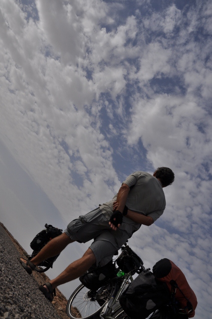 Die politie security mannen maakte dat wij zoveel moesten fietsen, want wij hadden liever gekampeerd in de woestijn, maar dat mocht niet.