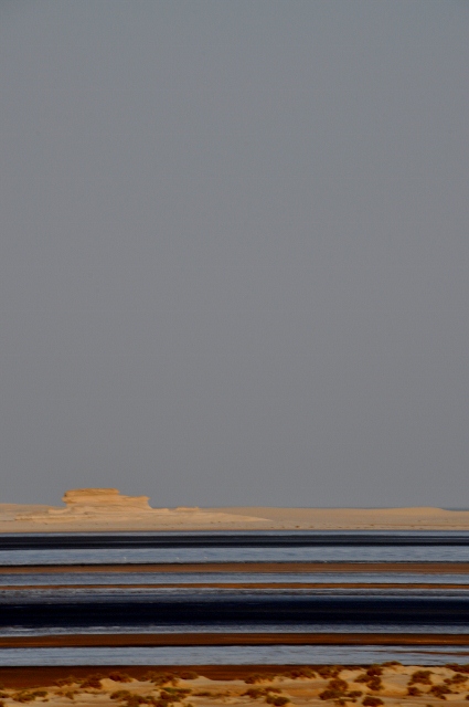 De Sahara in Mauritanië veranderd niet veel. Het valt me op dat er veel autowrakken liggen, dat de security post mannen enorm vriendelijk en veel opener zijn dan de Westelijke Sahara Marokkanen maar dat de bestuurders niet zwaaien in het passeren of tegemoet komen. Er is zijn meer kameelboeren en sommige komen hun kudde per Mercedes bezoeken. Ze hebben allemaal een enorme waterzak bij hun vee liggen. De moederkamelen liggen samen met hun jong, vastgebonden aan elkaar met een flink stuk touw. De ijzertrein passeert me aan de westelijke kant en het is indrukwekkend hoe lang deze is, terwijl de zuidelijke kant een ongeloofwaardig gekleurde baai vormt. Tranen wellen op want het is een overvloed aan nieuwe indrukken en een besef dat ik de Sahara heb doorkruist. Ik voelde dat ik het zou kunnen maar ik had niet gedacht het zo snel te doen.
