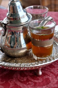 Er is wereldmuziek en mint thee voor tweeëneenhalve euro per pot. ‘Wat? Zo duur?!’ roep ik verschrikt uit tegen de serveerster in synthetisch wollen jurkje met dikke wollen panty’s en een gouden kerstversiering om haar hals. Ik heb nog wel twee potten genomen ook, terwijl ik gebruik maakte van de wifi. Terwijl een bos munt maar tien cent kost. Een complete maaltijd kost in dit restaurant, waar ik de dure thee nietsvermoedend heb besteld, iets van twintig euro, terwijl de tagines die ik maak maar anderhalve euro kosten. Voor twee personen.
