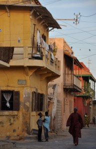 Deze dagen van Tabaski betekend voor de Senegalezen aangekleed op hun mooist de familie bezoeken. De vrouwen kunnen er normaal gezien al wat van, maar nu slaan ze door. Gehuld in heerlijke walmen zalfjes, crèmes en ongetwijfeld namaak parfummetjes, hun prachtige donkere lijven strak omhuld door allerhande materialen en hun platte voeten geduwd in hoge hakken lopen ze door de straten vol zand en vuil en keutels van de schapen van de dag dat ze nog leefden. Hun glanzende pracht tegen een achtergrond van Franse koloniale huizen in zoete kleurtjes. De stofjes van de mannen hun kleding is glanzend geklopt door een techniek zodat het nu lijkt of ze in plastic kleding rond lopen.