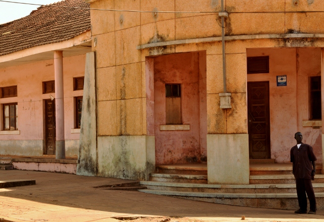 With so many blessings I peddle happily but slightly tired into Bafatá. I decide to have some luxury, check in a hotel and check out the beautiful faded Portuguese town and eat fish in the evening while vultures hope’s fixed on the fish heads. I have a very pleasant evening where I enjoy the luxury of running water and electricity, a scarcity in this country. The year’s turning into 2013 with an ongoing party next door.