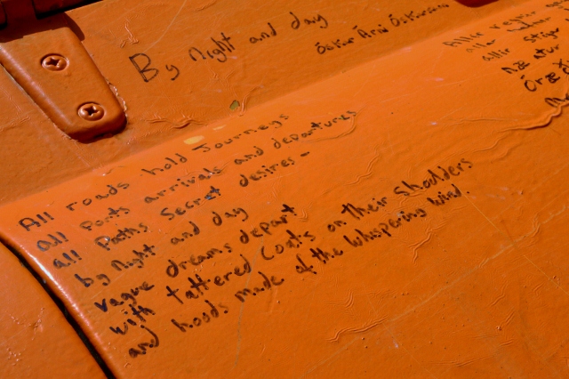 ‘I like your clothing style’, zegt een stalhouder waar ik zakjes water en melk voor de thee koop. Bullshit, denk ik. ‘It’s my sleepingdress,’ zeg ik met een overtuiging zodat hij ook wel begrijpt dat ik niet te versieren ben. Ik mis de jungle waar je altijd een stukje voor jezelf hebt, het is vreemd om geen strand en geen bush voor jezelf te hebben. Het is opeens vreemd en bedrukkend dat zoveel tenten zo dicht op elkaar staan. Ik voel me vreemd omdat ik op deze camping mijn keukentje opzet, alsof ik een kind ben met haar poppenhuisje. Ik voel me vreemd omdat ik niet met Oliver naar de bar ga. Vreemd omdat ik niet jong ben maar wel tussen jeugdige drinkers ben belandt. Of is dat een vooroordeel?