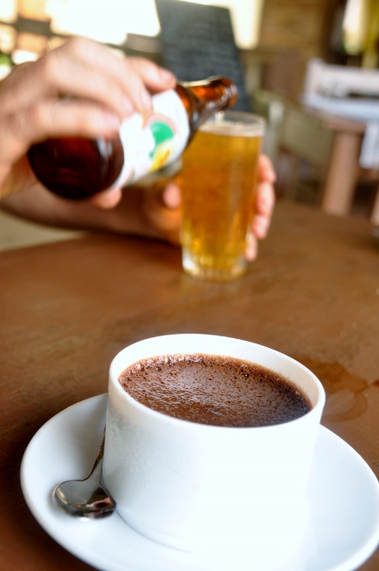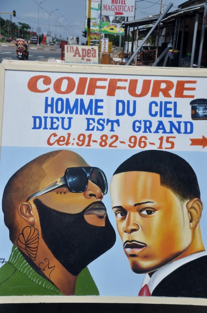 Ondertussen genieten Oliver en ik van de stad, die groots en volwassen aanvoelt maar heerlijk speels is gebleven. Eindelijk is er weer thee en koffie te vinden, soepkommen zo groot dat heel mijn gezicht erin weerspiegeld wordt. Er is weer stokbrood met omeletten en spaghetti met nog meer omeletten, er is een avocado salade, voor €0.80 nog verrukkelijker. In dit land zijn vele Guinean die hier hun cafetaria uitbuiten en wat geld proberen te verdienen. Terwijl zij dat met flair weten te doen, kijken wij naar de televisie waar een rapper in een lemen dorpje op een fiets rond trekt, terwijl hij allerlei onmogelijke rapper posities aanneemt telkens voor een interessante locatie zoals een steenfabriek of een lemen hut. Terwijl de big mama achter de muziek installatie luid en duidelijk haar favoriete keuze ten gehore brengt, en zo lijkt het alsof we op Cuba zitten, in een zondagse aflevering van een gospelkoor terwijl we koffie en spaghetti eten, waar ik de stukken blikworst tussen uit moet pulken. Ja, ik mag Togo wel…