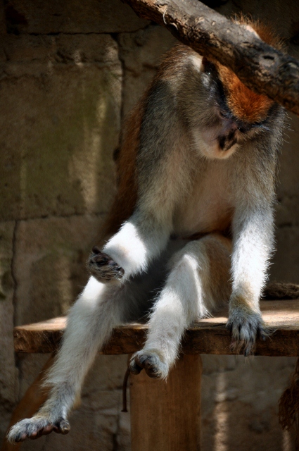 In het donker arriveren we op Camping Alice, met maar 75 kilometer op de teller, ons oponthoudt twee gebroken spaken en Oliver die zijn vergeten bidon terug is gaan zoeken, worden we verwelkomt in een heuse dierentuin. Het voelt alsof ik in een onwerkelijk Afrika ben gekomen: een grote baboon zit in een hok, diverse andere aapjes lopen los rond of zitten verveeld aan een ketting die ze makkelijk door kunnen bijten, er lopen honden en katten en het gezang van de vele vogels overstemt het geluid van de hoofdweg waaraan we nu kamperen compleet.