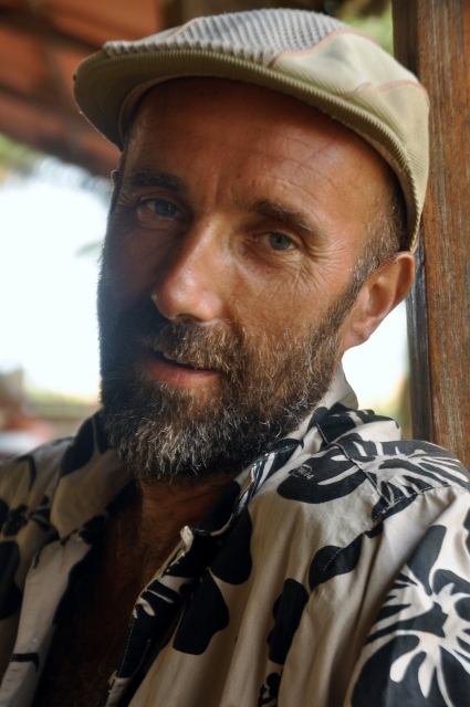 Toch, het sfeervolle van dit hippieleven welt op wanneer ik ontwaak en bekeken wordt door de baboon, en twee honden die bij de opening van de tent liggen, glurend naar aandacht. De palmbomen in een elkaar opvolgend patroon langs de helder blauwe oceaan geven een zeer tropisch plaatje. De dennennaalden van het bos aan Grand Popo prikken vol aandacht in mijn voetzolen. En het is hier dat we onze Franse vriend Yves ontmoeten, nog aan het bijkomen van zijn malaria, liggend op een mat, lezend in een boek, fietsen wij naar hem toe.
