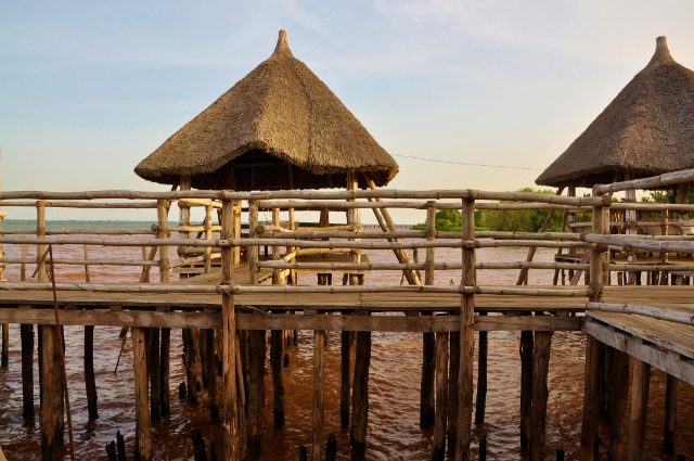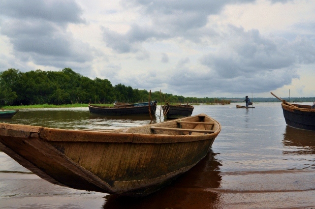De volgende ochtend voel ik de voodoo sfeer beter wanneer we een meer oversteken met weer een pirogue, een uitgeholde boomstam. Bepaalde delen van het water zijn afgezet met takjes en verstopt in de bush langs de waterkant rijzen kleine tempeltjes op. Het is stil en bijna onheilspellend, al kan dat ook komen door de constante strijdt die we moeten leveren om een prijs voor dit soort vervoer overeen te komen. Via een alternatieve route, over een piste fietsen we verder naar Cotonou. Maar niet nadat ik een dubbel ontbijt op heb.