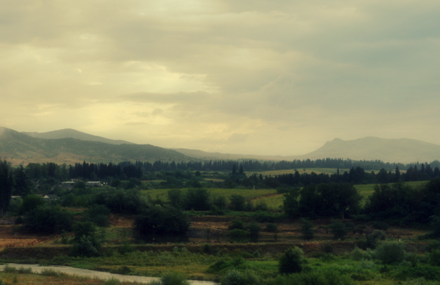 Tot nu toe, deze ene dag fietsend door Georgië, is lieflijk bevallen. Het is een arm land, een land vol tradities. Mannen slapen in afgedankte trucks en lorries langs de hoofdweg waar ze in de ochtend verder gaan meloenen te verkopen. Er zijn vele benzinestations, de meeste verlaten. Die wel operatief zijn verkopen bier aan chauffeurs, grote pullen voordat ze weer verder rijden. De geur van dennennaalden en het rustgevende geluid van krekels blijft bij me. Ik trek aandacht, wordt op de foto gezet, toegezwaaid, het verhaal van Afrika gaat verder in Oost Europa, of is dit West Azië…