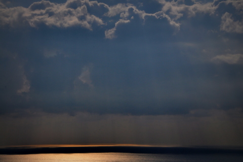 De camping is een hoger gelegen stuk grond waar met mijn tentje nu 4 stuks staan en meer passen er niet op. Het is lijkt op het bijbehorende vuilnisbeltje van het grindstrand ervoor. Er liggen, naast de gebruikelijke rotzooi, gebruikte maandverbandjes en wat rond slingerende toiletpapiertjes. Ook ik word hier ongesteld, en een toilet is er niet, zoveel is me meteen wel duidelijk, maar om nu naast mijn tent mijn bezigheden te gaan doen? Dat doe ik alleen ‘s nachts en dan nog raap ik het toiletpapiertje op en neem dat mee om het in een vuilnisbak weg te gooien. Echter, de Georgiërs zijn minder bewust (geeft niet, ze kunnen niet alles hebben). Het kampje ligt vol rotzooi. Het strand trouwens ook, samen met witte lichamen waarop grote rode plakkaten sieren. Toch, het is een rustig en mooi plekje. Mijn buren een Iraans stel, die ik in stilte vereer om hun rebelsheid. Ik kan mijn ogen niet van het artistiek alternatieve meisje af houden, en zo ontdek ik, zij niet van mij. Ik denk dat we elkaar bewonderen, zij met rode lipstick, ik een blauwe fiets. Het meest fantastische is wel dat ik het weer voor elkaar krijg om weer een chai te drinken. De ochtend schotelt me een wazige blauwe rust voor, wolken vol regen trekken langzaam weg, net als ik…