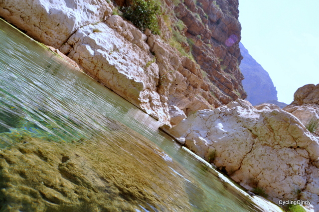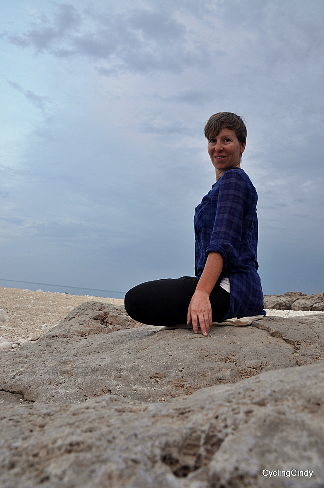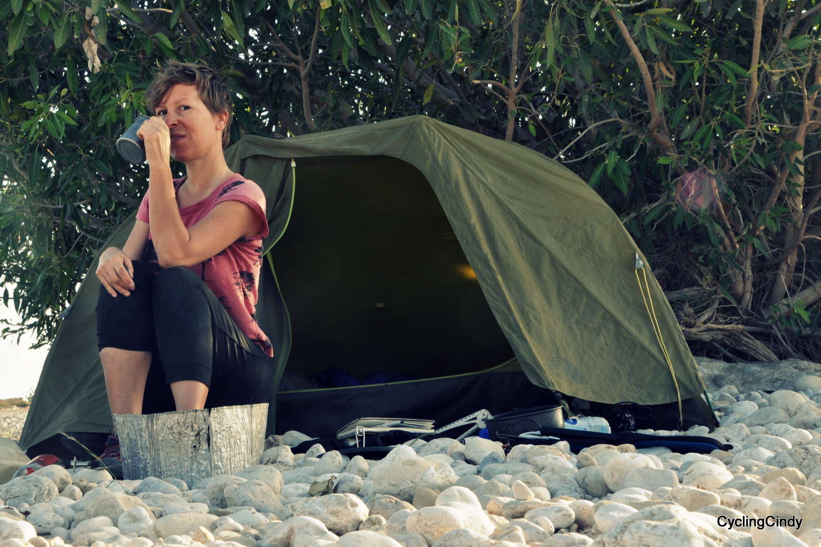 Being in a wadi was the first time for me. I might not be living in a time where we need the wadi’s for our livelihood, but let them be a beauty nevertheless. The water is incredible soft and lucid, it’s of an unrealistic beauty. Opening my eyes under the wadi water all I see are blues made of crystal clear perfection and my feelings are leveling those of being in love. Later on, having cycled to another camp, the bleakness of the white stones is reflection, the haze is embracing all of us out here, the soft sound of the ocean is behind me, as I am not going to camp right at the beach anymore. All I see are donkey feces around my camp, a few bird of prey. To be ultimate content, happy and fulfilled, much is not needed.