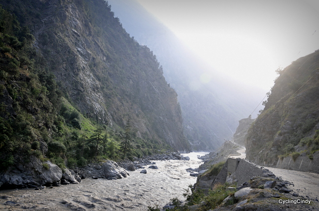 Being tired by lack of rest, such words just fall wrong. Test? Do I have to prove myself now? For who? I can do ánything because power is in the mind. And I don’t want to prove myself right now. I don’t want to cycle a detour of 20 kilometer, only to move around a slide and get no further than 5 kilometer than where I started. I don’t want to climb a 13 kilometer today. I am already tired when I wake up. I have options, like staying and waiting till the landslide is cleared, or take motorized transport. Nevertheless I continue my daily tasks of packing the bicycle, having a heavy paratha breakfast, and leaving. Nobody forced me…
