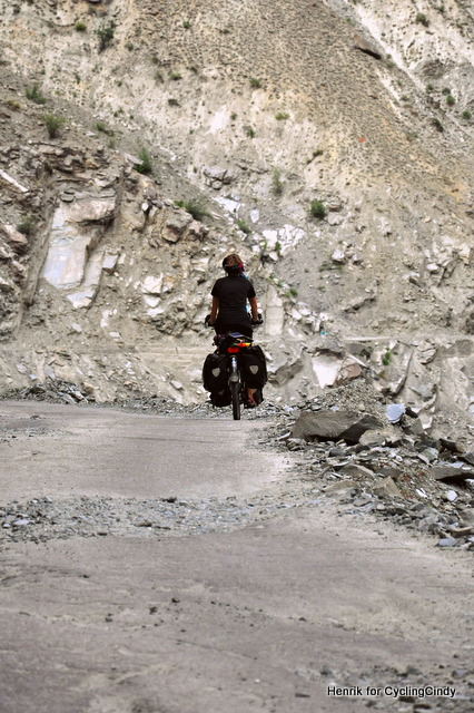 There are benefits, cycling with someone else, although it’s equally getting used to being with two, adjusting to each other, and of course, compromise. What I like is when I see another bicycle parked against a crumbling wall knowing the owner of that bicycle is already sitting in the restaurant and knows what the menu has to offer. I would enter the little restaurant where the owner would welcome me with: ‘two chai, one sugar, one no’, because that is how we communicate, most clear, with the simple, relaxed people of Lahaul. When I see that other bicycle balancing scaringly on a cliff I know I am waited for, without moody face, instead with an expression I never learned to understand. Finally I think I can rest, only to hear: ‘Come on, move on.’ We have agreed on 40 to 50 kilometer a day without my recognition as I know it.