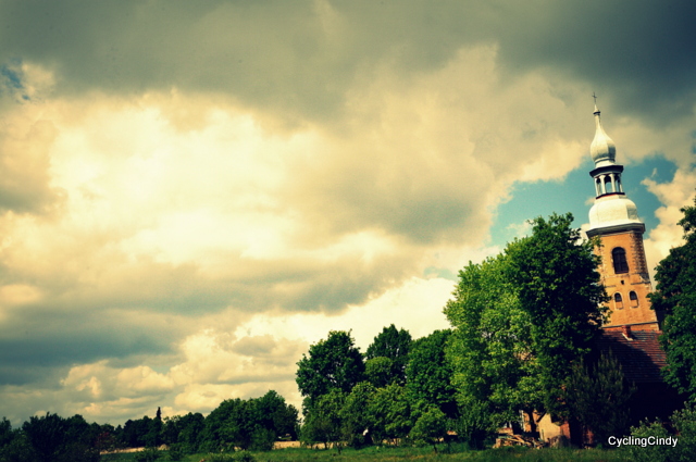 I slowly ride into the former Soviet controlled part of Germany and when I hit it, I hit it hard. The feeling is one of depression. Such a big difference with tiny villages who were never part of the Soviet controlled era. Where beautiful picturesque villages with beautiful fronts and tiny bakery’s with a cheery, helpful frau place our order of 2 big rhubarb strawberry cake-like pie. Now I see big, greyish buildings painted pink and light orange, impressive buildings in decay and people with unhappy expressions, curved postures as if the past weighs down on them. Even young couples who try to continue their happiness by a dog or a baby look depressed and tired.