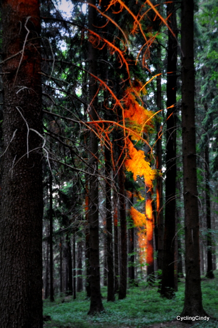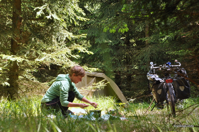 When we cycle on, we are delighted to sleep in the forest again. Maybe we are so much enthralled we almost set the scene on fire. It sure does like we do, don’t you think? The low sunlight hits the trees beautifully and all I catch is a small blister when I try to save the chai spices from fire.