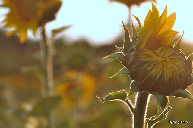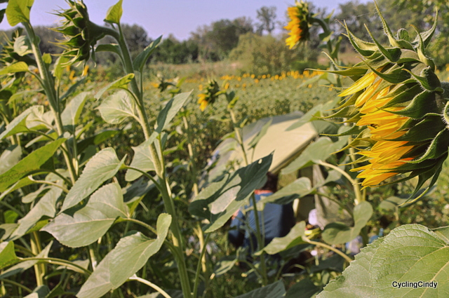Oh sure, there’s still an enormous amount of agriculture, way more than strictly necessary, but at least there’s some variety. I don’t know it yet and IU will get fed up with it too, but for now it’s a welcome change: sunflowers and, what I think, soya beans, although that’s a very boring crop.