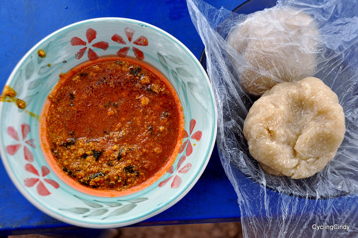 What comes up first is eba and fufu from Nigeria. Eba and fufu are made from cassava, or manioc. I love Indian food too, aubergine and okra my favorites. A good, varied thali makes me happy too.