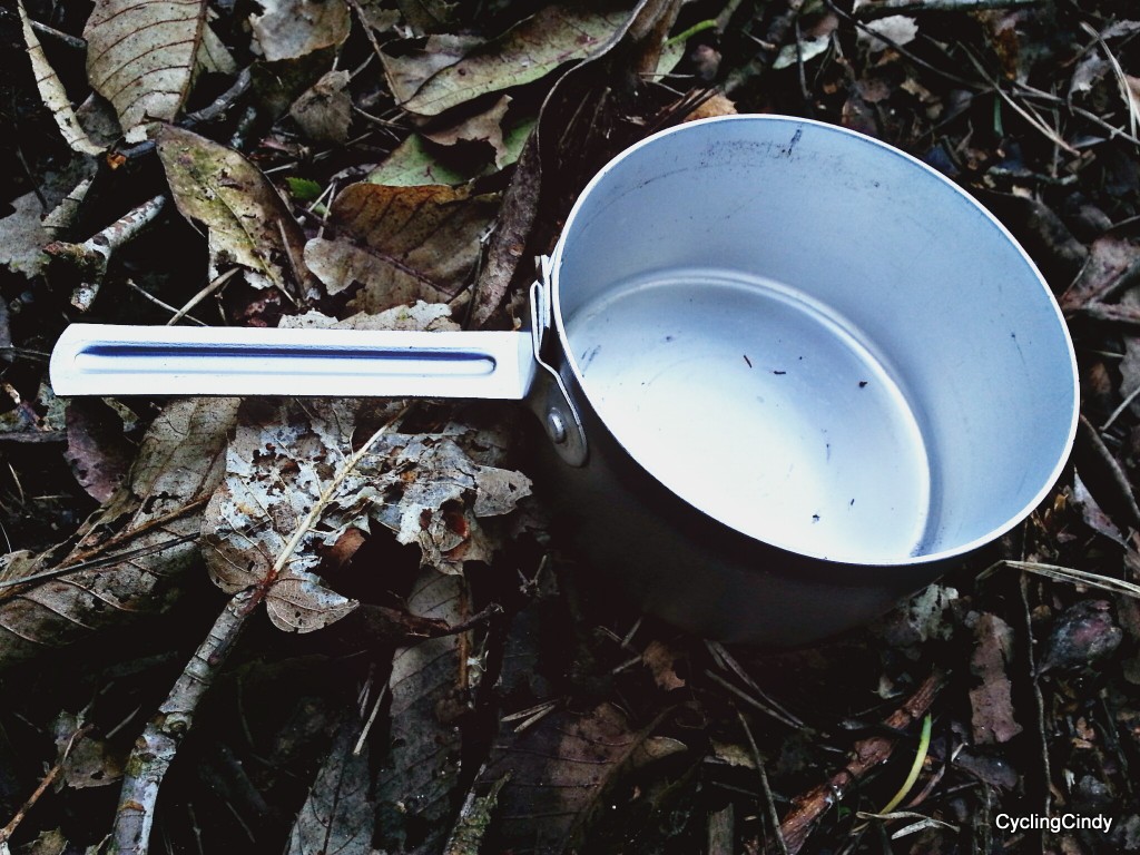 The little pan with it’s handle. It is way too small to boil a decent coffee or tea.