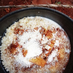 Porridge with left over rice and coconut