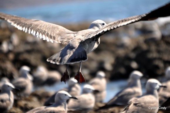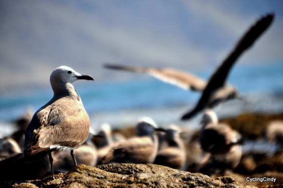 Other days I choose the ocean as my camp, so I can have a refreshing bath, together with pelicans and curious little birds who come close to check out their new environmental specimen. Some birds are neither small nor curious, and I chase after them for a photo.