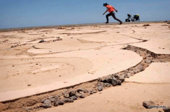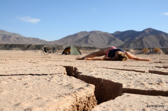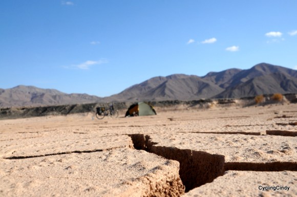 How luxurious is it to cycle along deserted pearl white beaches and decide at the end of the days ride that the ocean is too loud to get an undisturbed night sleep. I choose the mountainside, complete with cracks where the earth has moved a bit.