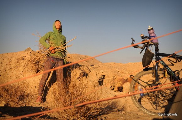 Miraculously I know one camp spot with bushes -the only one in the whole of Atacama so far- and I am able to cook a meal, boil tea and eat well. Then, dad arrives…