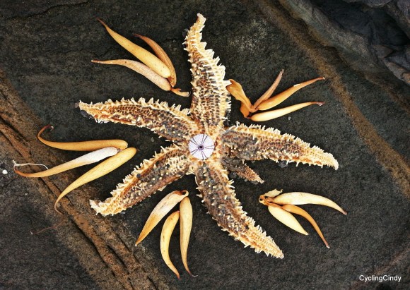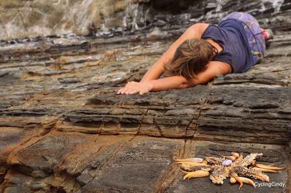 I search for treasures at lonesome beaches, sea stars, washed up branches from deep down below. Birds must catch crabs and take them to rocky outcrops to eat them, as I find many dried up, bright red crab bodies.