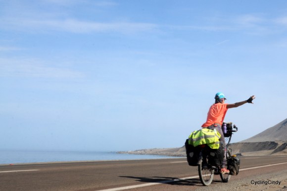 Once in town I see a poor woman, she is dressed in clothing that shows her body in it’s most natural state. Small breasts in a black bikini top, a slim body in a light cotton, very short skirt and a white vest to protect herself from the harsh sunlight, zipped open. From behind the window in a gas-station, where I charge my phone, I watch her belly movements. She draws it in, she puffs it out, she covers it with the elastic rim of her skirt and she strokes both her hands over her belly and decided that when a trucker passes to suck in seriously so it seems starvation is near. She is hitchhiking. Meanwhile I eat ice-creams higher the value of a cheap meal. She is taking on weird poses as if she’s a prostitute? Her leg moves in a most unnatural pose, her body bending forward while she tries to get her belly tucked in. I eat my third ice-cream. It is 45 degrees on the bicycle, with wind. My belly is fuller than hers, she is actually good looking, except from her washed out face and wild hairdo. She tries it on with men in fancy cars, their wife into the gas station to buy refreshments. She ‘hitchhikes’ at taxi’s with clientele. I would like to tell her that her ways are not most beneficial, but I don’t speak Spanish that well, besides, I am really enjoying my 4th ice-cream…