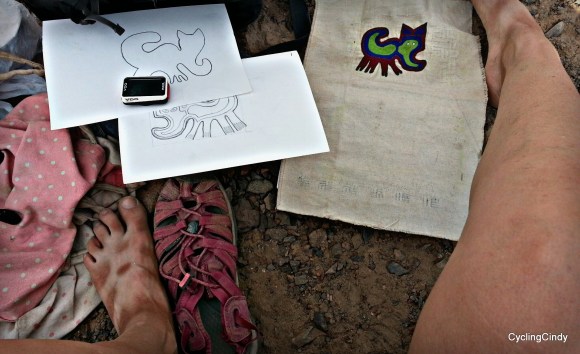 When I am lucky I have real milk and prepare a milky Nescafe, a treat. I embroider some, then photograph the beauty around me. Sometimes I get lost in more than just thoughts. It’s like I transform. Until a driver parks his truck way below my camp spot and the magic is abruptly gone.