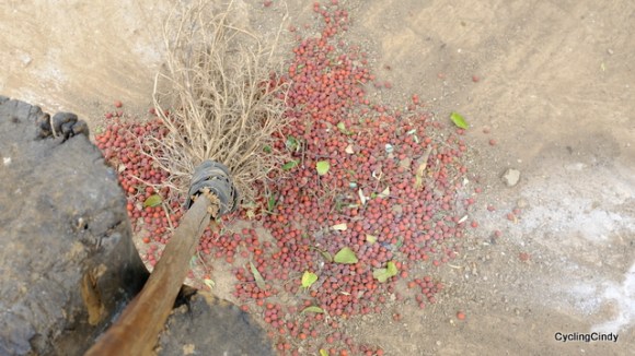 This is how I want to live, when I am not traveling. The ground is packed mud. There’s a fire pitch. A well. When I am settled in, a beautiful cat comes purring around me. Heavenly goodness, can it get better?
