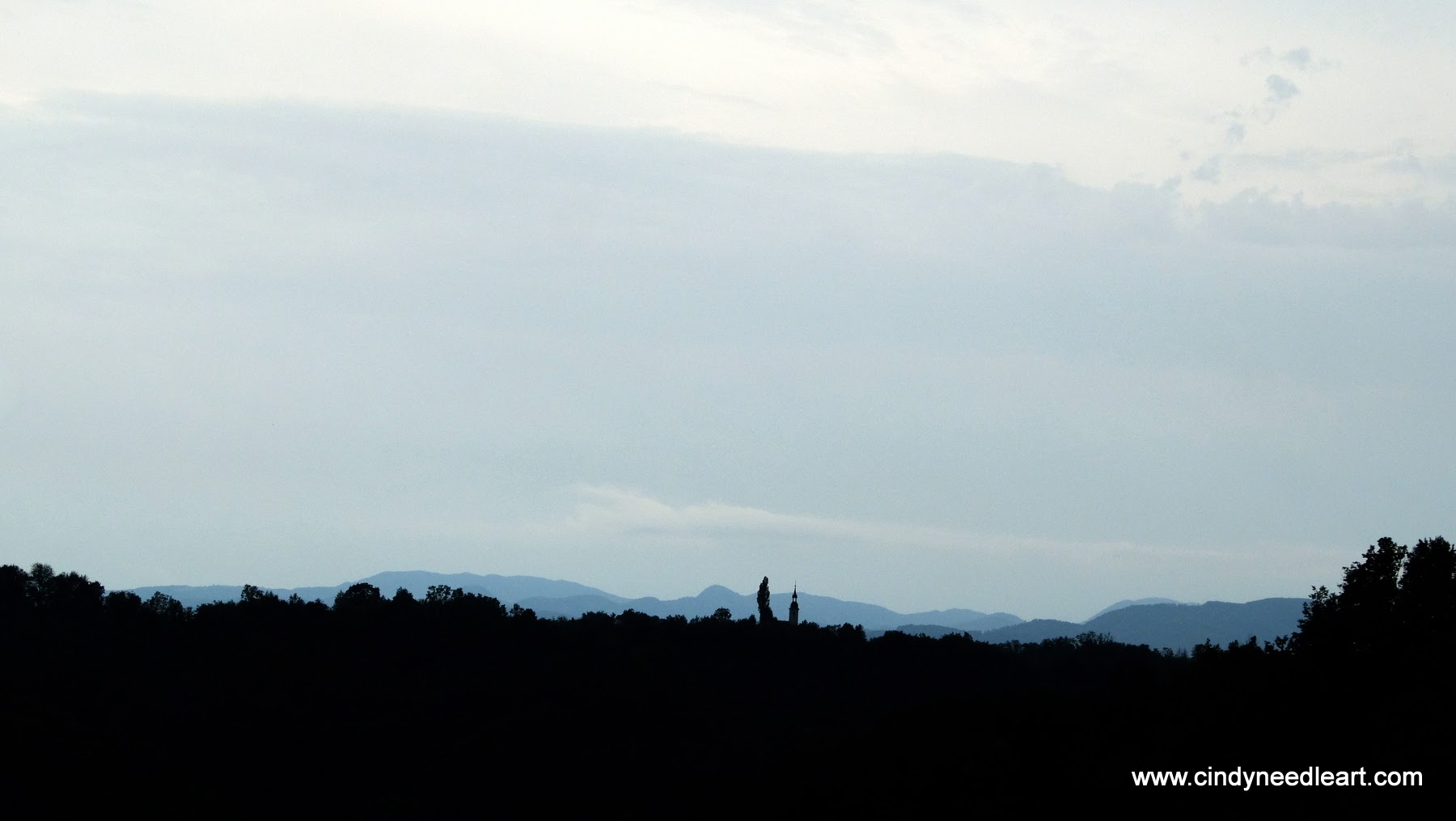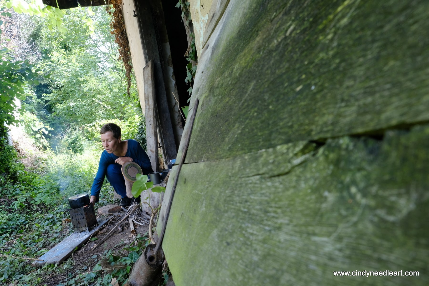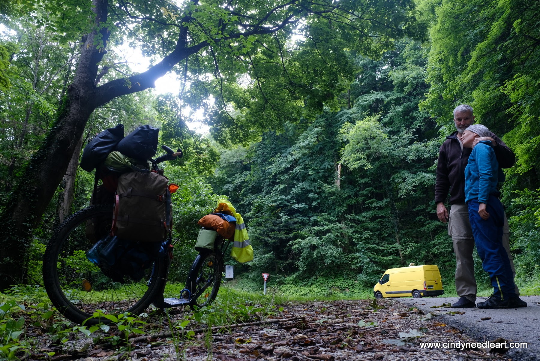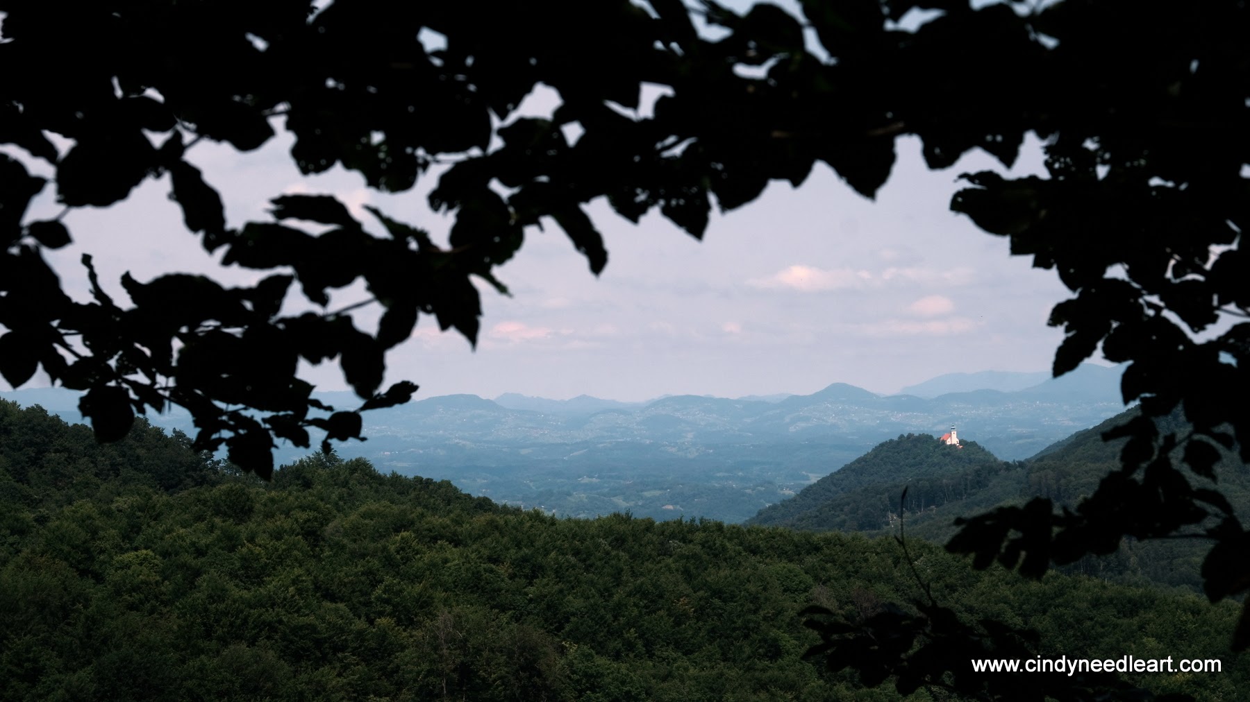 My camp is above Geo’s camp spot and looking out over Podsreda castle. A storm force not seen for many years has uprooted many trees and I am not very much at ease camping in a logging area. Earplugs come in handy so I won’t hear the wind swishing the tree tops.