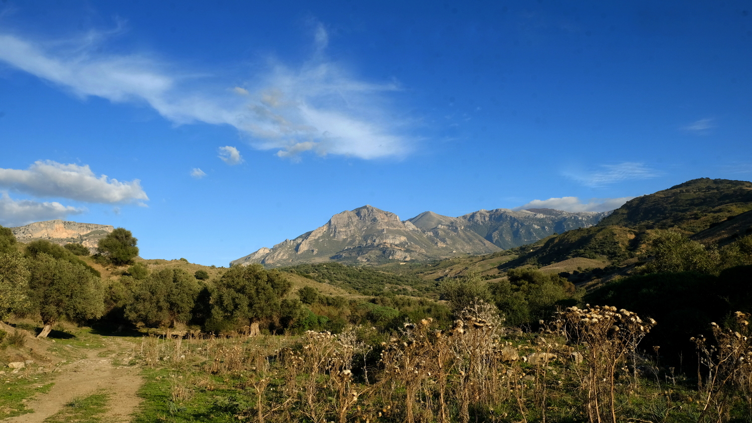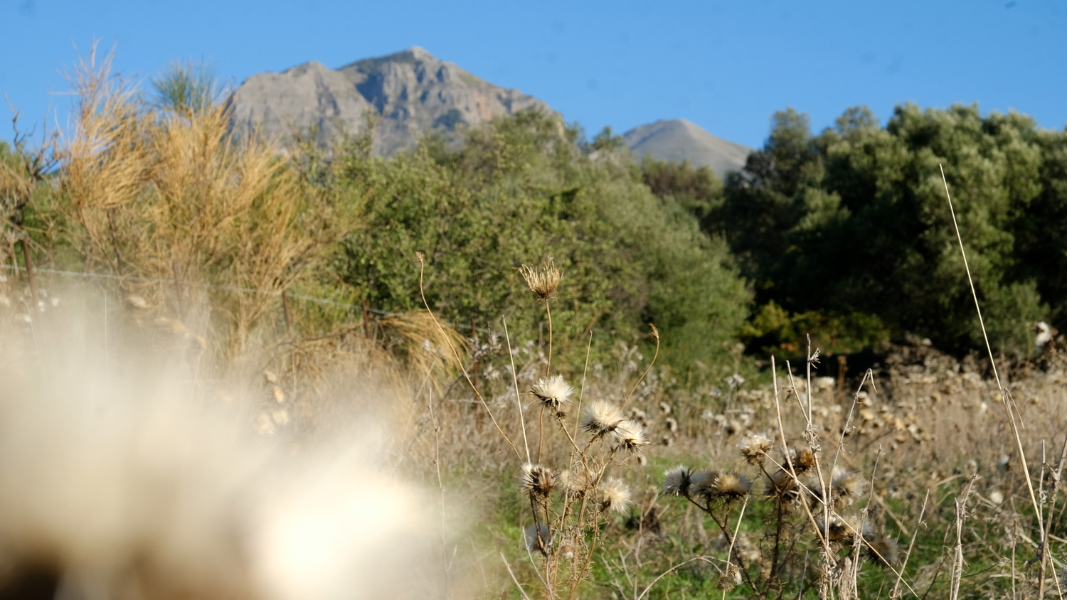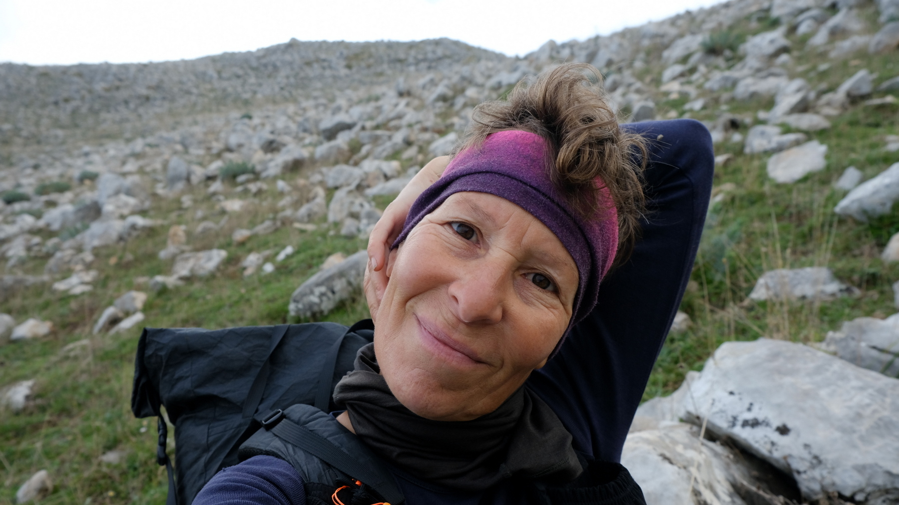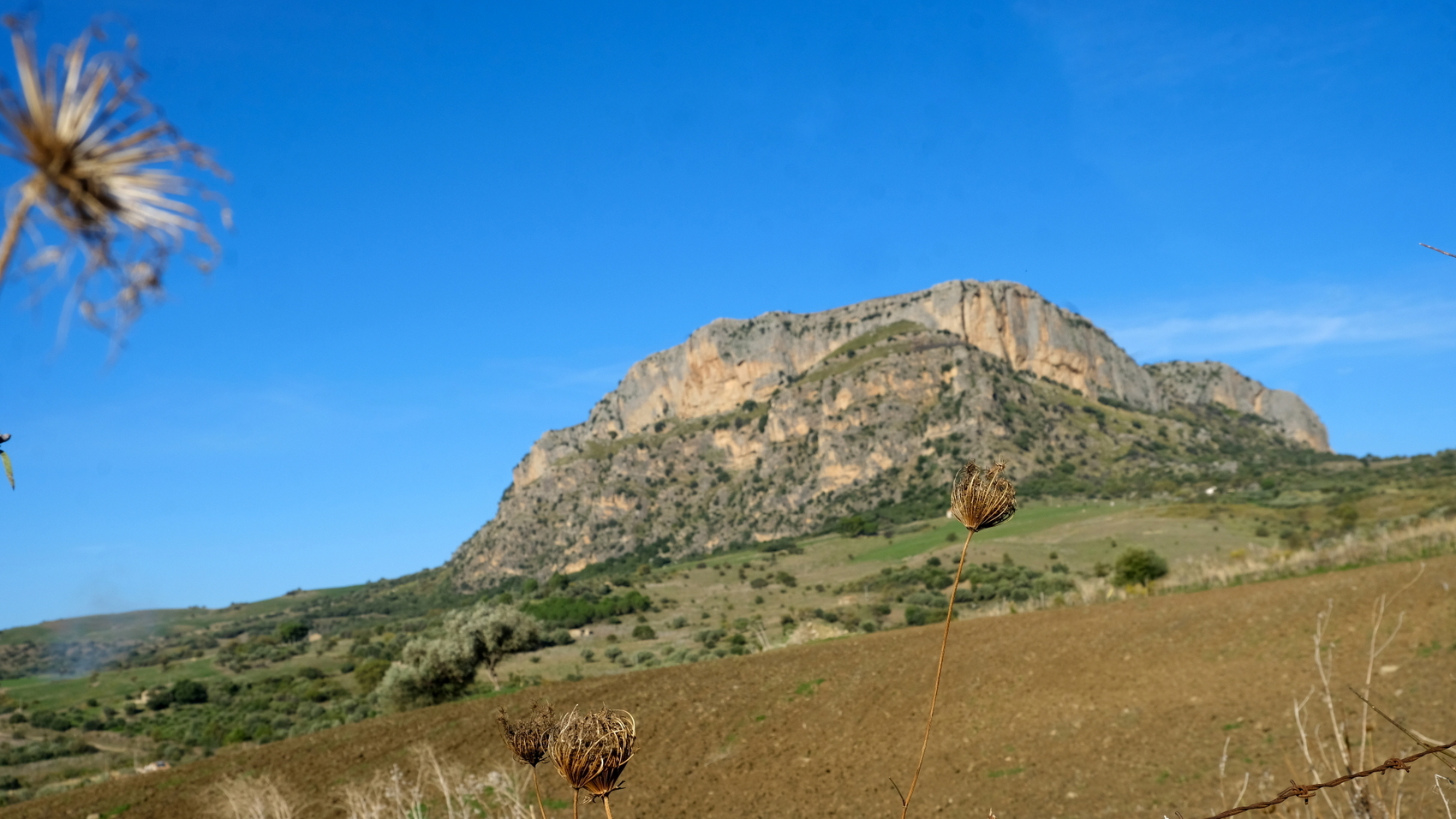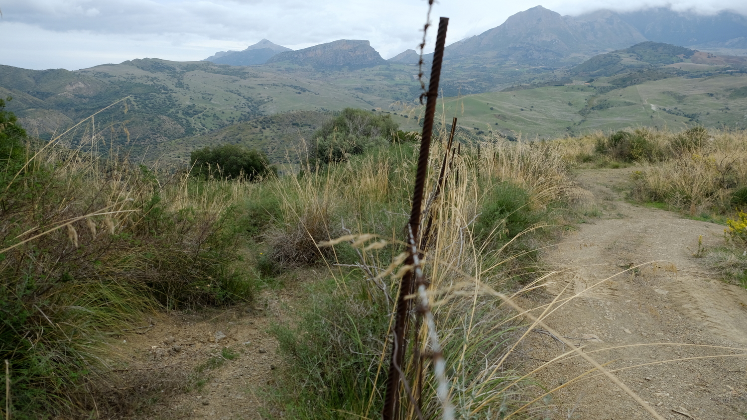 Stepping into a supermarket when emerging from the van, you buy too much and so, after 5.5 kilometers walking with an overload, I have to stop. Yesterday I went with Geo to the second highest peak of Sicily, now I sit some distance underneath, finished for the day.
