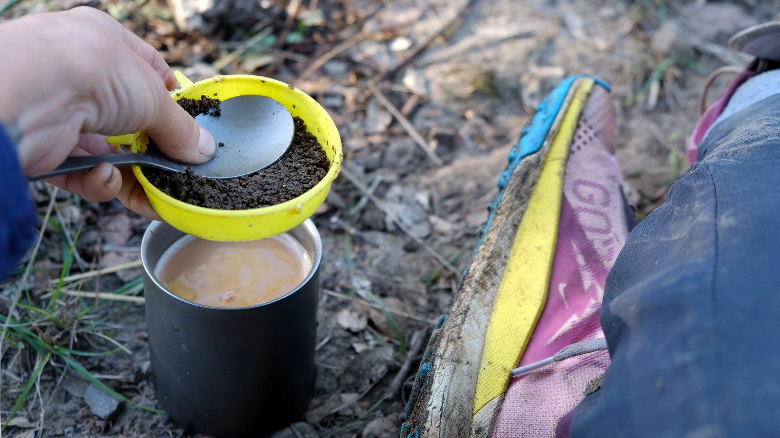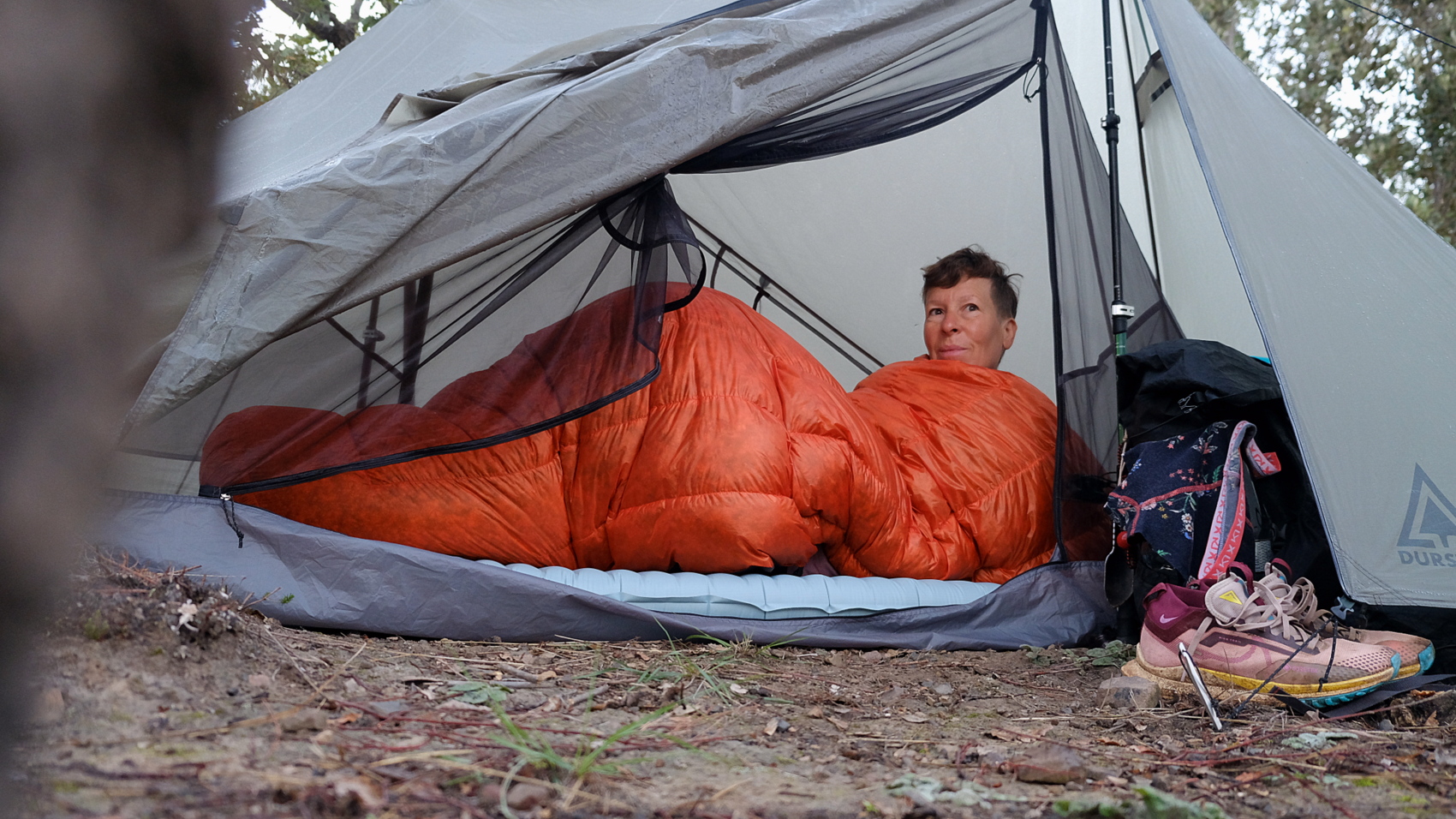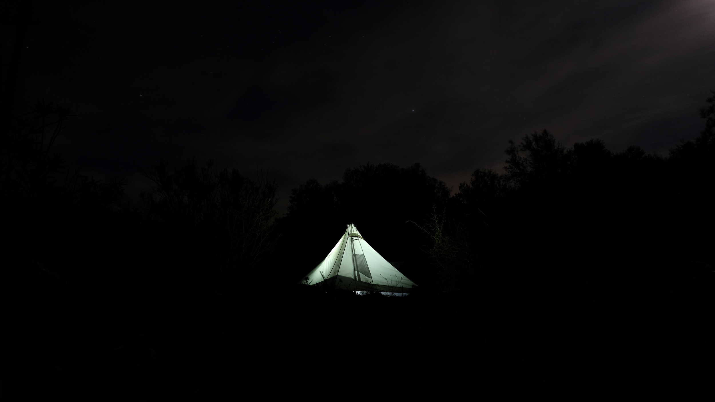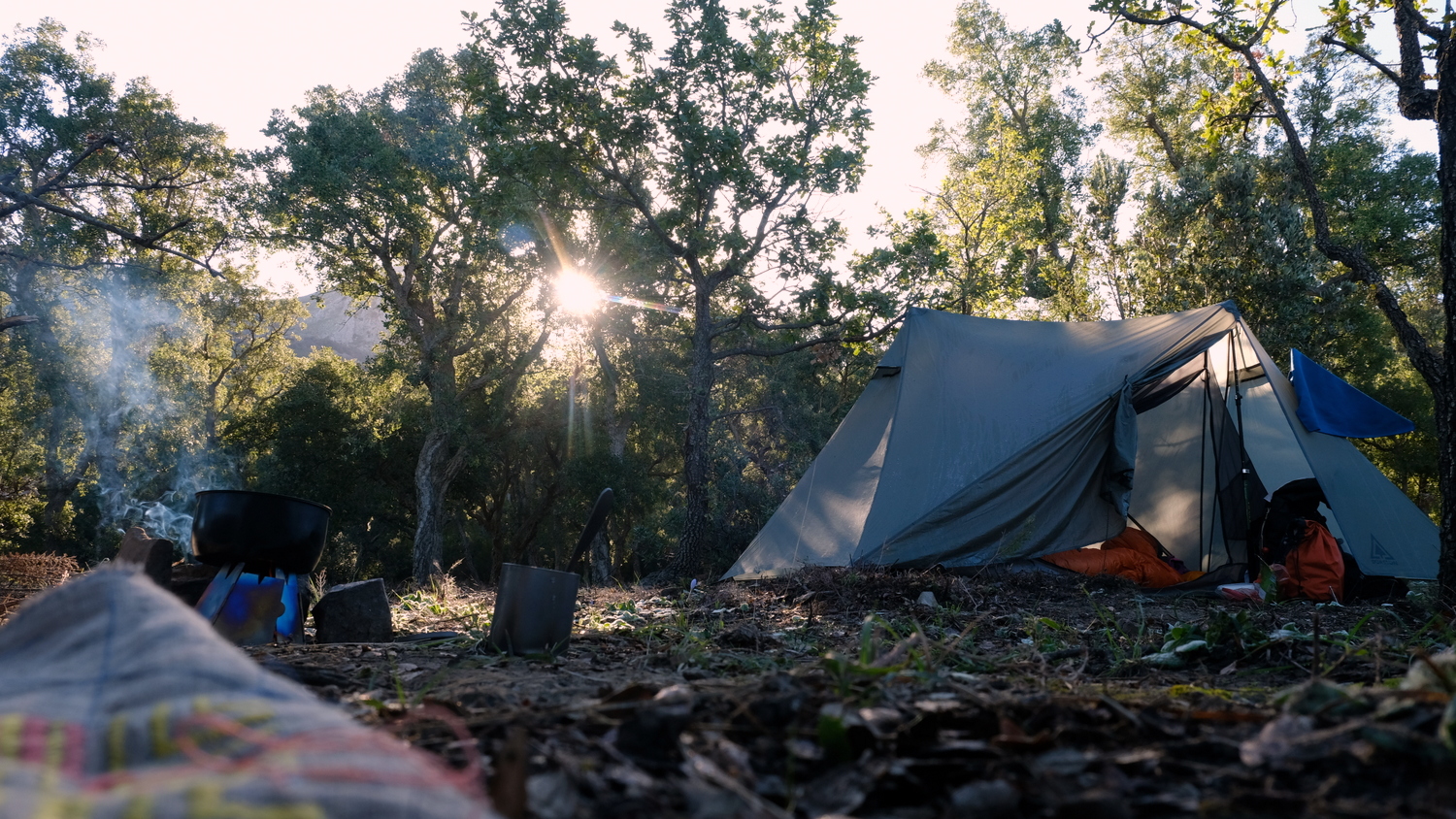 Aware that wild boars can fetch my food supply at night, everything is safely secured under the thin fly of the tent. Near the mesh inner tent and the outside, a titanium bento-box stands soaking oats, seeds and nuts. Asleep in nighttime I hear sounds too sophisticated for a wild boar, upon which I scream to scare it off. When it doesn’t, my earplugs are removed and the headlamp switched on. A fox. A lovely orange creature trying to get a hold of the bento-box with oats. Never knew they fancied oats?