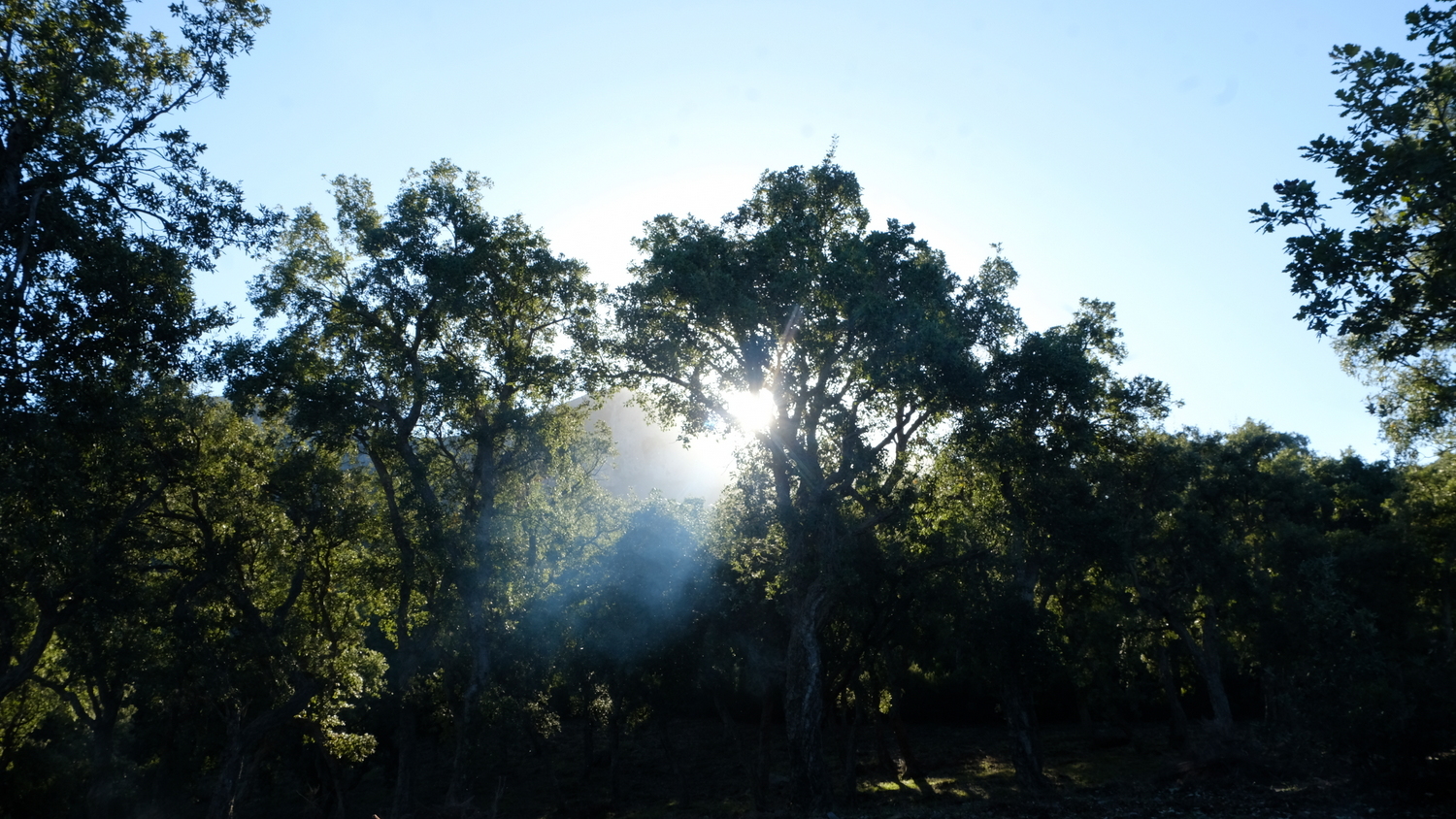 Clean and at a perfectly level patch of cork trees I decide to stop. In total alignment with the beautiful forest I am in, I feel met in all my desires. How I feel a little shepherd when I walk among cows and sheep, my mind making up it is I who lead them. With patience I give cows right of way, so that they won’t trip over the rocks. What is more beautiful: quietness of nature that impresses without threatening animals around?