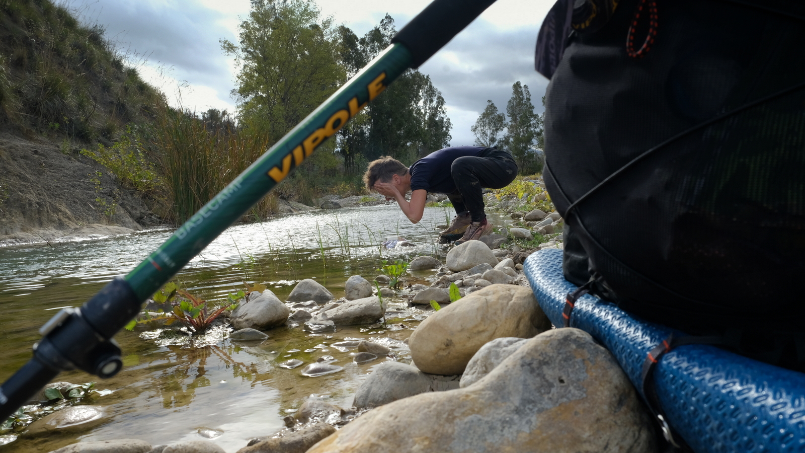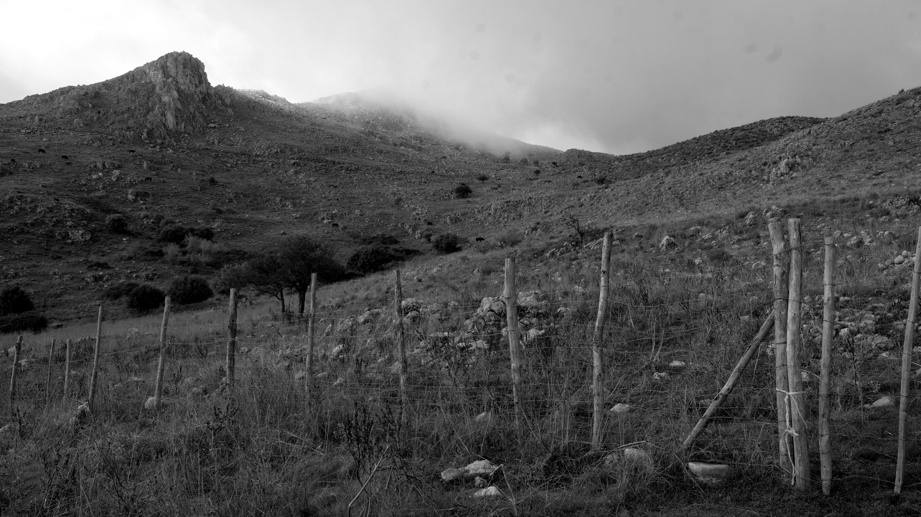 I do as I already did and continue on in the dry riverbed. I find a spot where the farmer can not see me but am right under his farm, some 40 meter lower. Cows surround me and I am certain the farmer will not come where I am: his stature did not witness that of an agile gaucho.