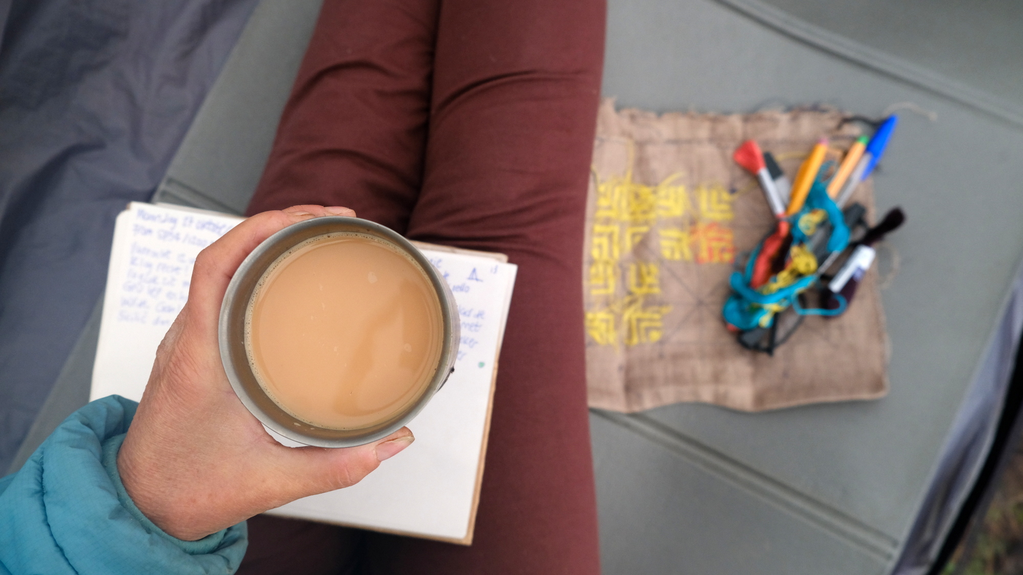 Clouds drifting in, being at a 1000 meter altitude the tops of my fingers are cold, they sting like miniscule needles. Also I have attracted an itchy rash, scratching myself exactly as I heard the fox doing this night besides my tent. Even so, I am back in my own pace and it suits me grandiosely well. Geo and I had a couple of wonderfully aligned days in the van where we both enjoyed all the little compromises we made for each other. Now it is back to my very own slow train. With Geo, it remains the fast lane.