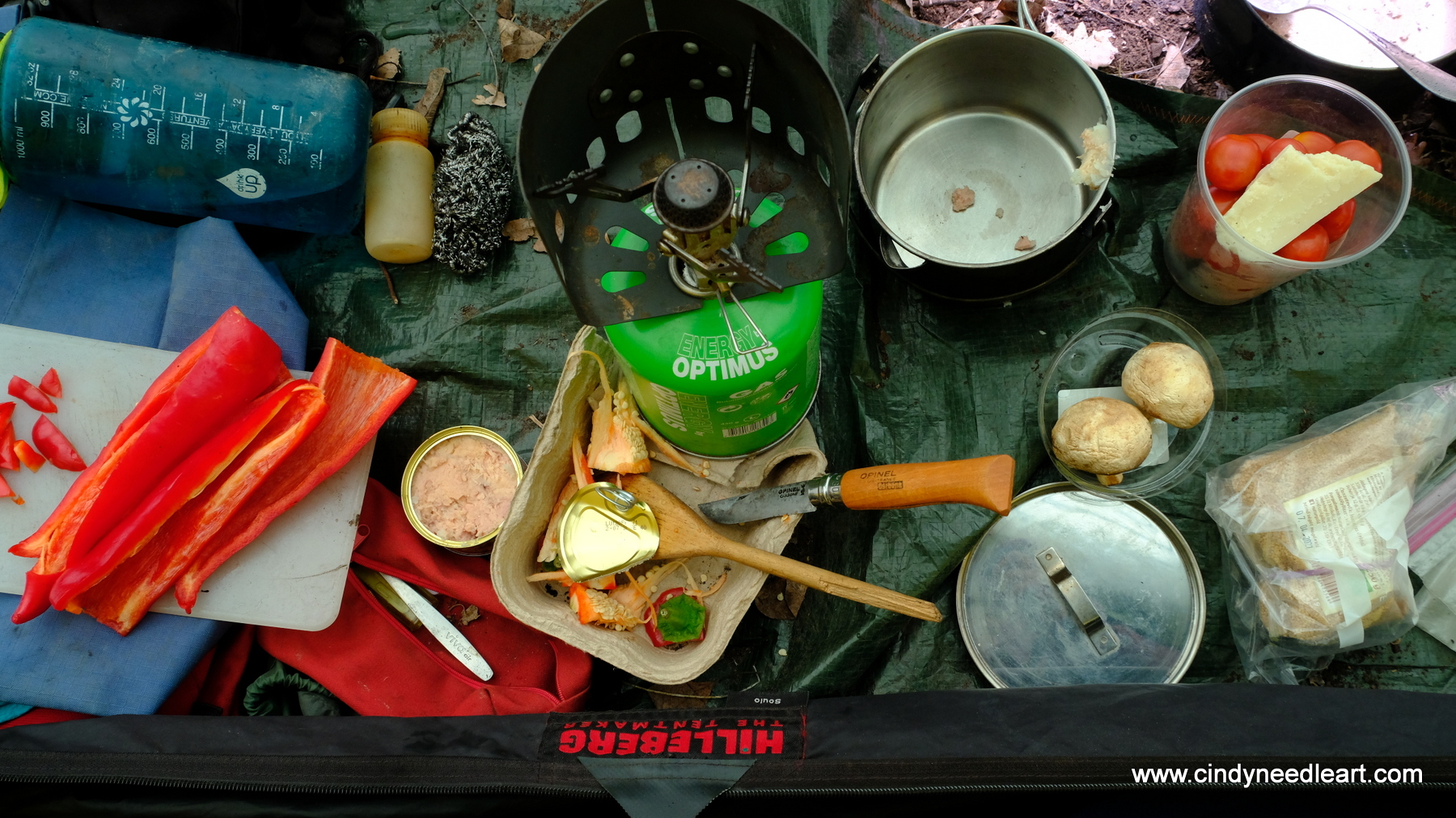 Geo and I relied on my Bushcraft-Essential Bushbox Pocket stove when we were traveling by motorbike in South America, since we had to count the grams and make do with a minimum of space, but this turned out to be a mistake. Often there weren’t the slightest sprigs of twigs and when there was wood, it often was the altitude and circumstances that made it hard to get a fire going. I needed a gas cartridge or my Optimus multifuel. We eventually found a gas burner-head and a cartridge, but it was a thorough search to locate a shop in South America that sells them.