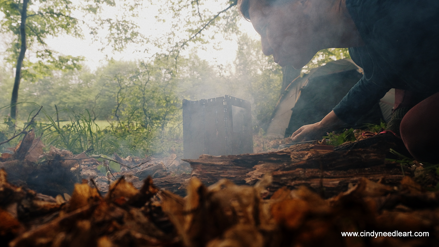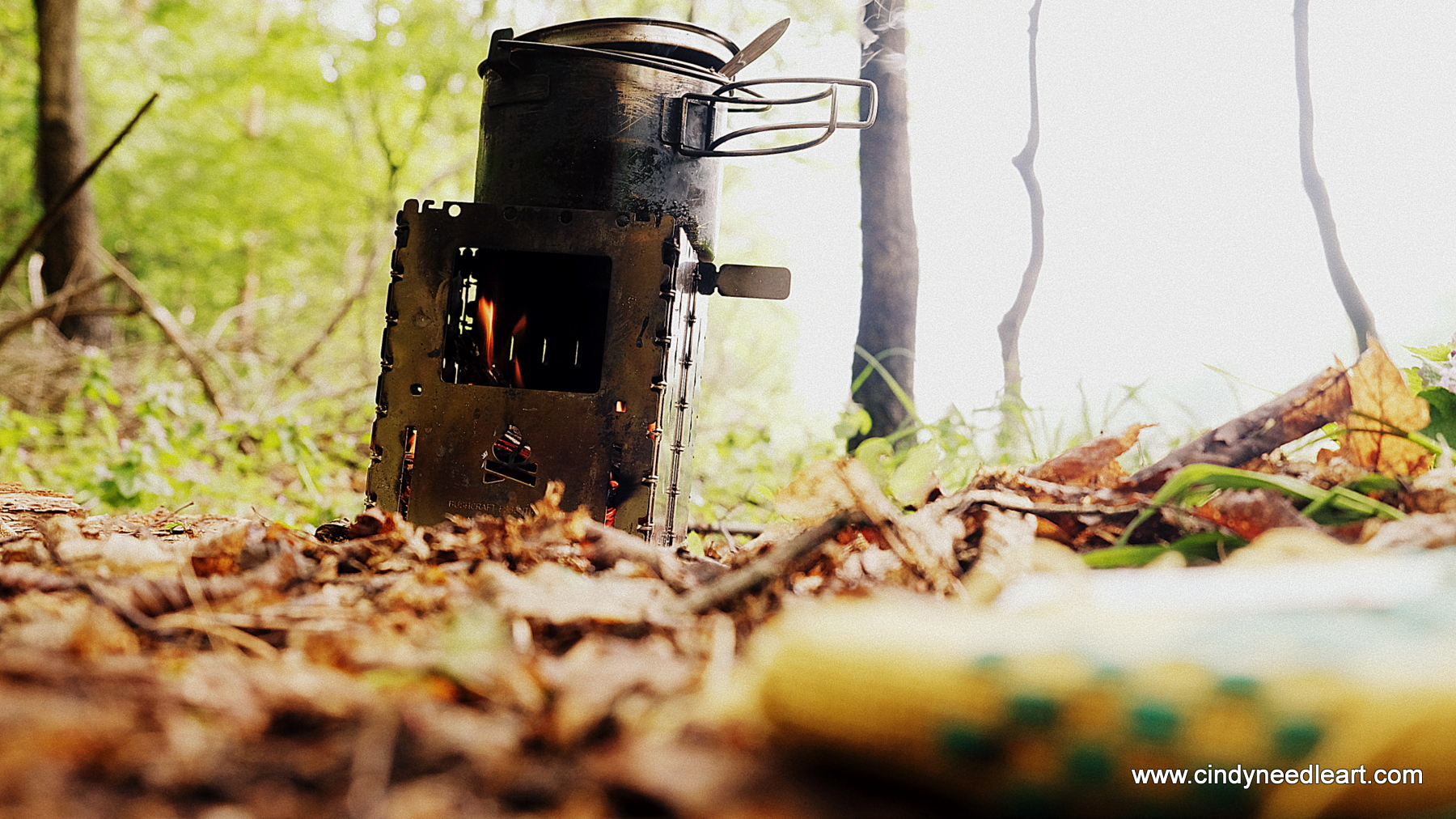 Not always, but often I like my camp experience to last until late morning. Having a small fire and preparing tea while simply resting and embroidering, is pure enjoyment for me. Nowadays I have a few options to choose which stove to take along. A journey with kickbike, bicycle or hiking trailer asks for a different stove, when the weather permits. And the option I like a lot is the Bushbox XXL.