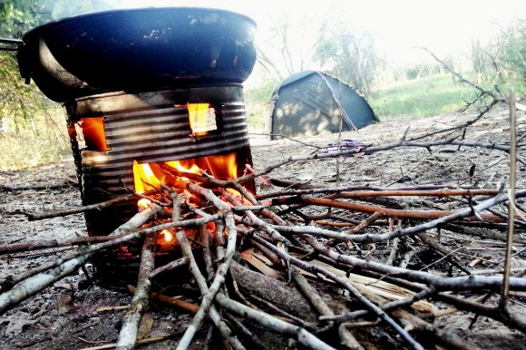 Not always, but often I like my camp experience to last until late morning. Having a small fire and preparing tea while simply resting and embroidering, is pure enjoyment for me. Nowadays I have a few options to choose which stove to take along. A journey with kickbike, bicycle or hiking trailer asks for a different stove, when the weather permits. And the option I like a lot is the Bushbox XXL.