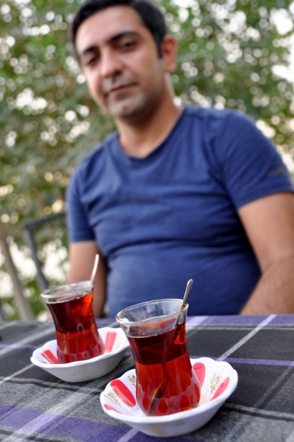 Veys took me out to show me the town. We went to a park where we drank chai. Then we went home and eat again. Then when I thought it would be a decent time to get to bed, Veys, his elder brother and his son Burak took me out to eat some threats, künefe. A kind of baklava and so heavy on an already filled up stomach, none of us can finish our little plate of sweet cheese, pistachio, honey dripped pastry. Then we have some more chai. And then, another friend accompanies us at home. This friend invites me for lunch the next day, on my way to Iraq…