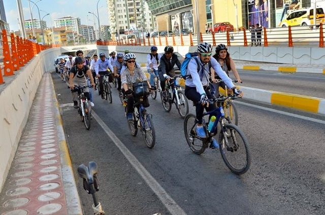 Ferat is participating in a cycling group with whom he’s making trips around Kurdistan, including Iraq and also a weekly city tour. This time they will dress up like business men in impeccable suits and like students in sharp-edged trousers and bright white blouses. I am surprised by the three women involved, including one on a decent mountain bike and dressed as a real woman. Unlike me she’s wearing a flowery dress tumbling behind her back wheel and her eyes are shining through lush mascara while her cheeks are red from blush. Damn it! Why did I not put some make-up on? I am also surprised by the guy whom we in the West would never thought of liking cycling, he’s wearing a beard typical for devote Muslims. I like this style, but many people associate it with different activities, except cycling. There’s a female architect, dressed rather unofficial, Ferat’s teacher dressed as a mechanic and Erkan is an artist dressed as such. Erkan is handsome too, and he’s my cycle partner for today’s ride through city.